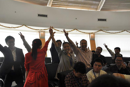 為提高團(tuán)隊(duì)凝聚力,加強(qiáng)總部支撐體系、研發(fā)體系和營(yíng)銷(xiāo)體系交流,由公司人事部組織“首屆‘捷飛杯’團(tuán)隊(duì)體育對(duì)抗賽”。對(duì)抗賽共設(shè)置五個(gè)團(tuán)體項(xiàng)目,分別為:拔河比賽、雙人運(yùn)氣球、接力賽跑、跳繩和籃球比賽。雙方經(jīng)過(guò)激烈角逐,營(yíng)銷(xiāo)體系贏得籃球、雙人運(yùn)氣球以及籃球比賽項(xiàng)目勝利,以3:2總比分險(xiǎn)勝總部研發(fā)和支撐團(tuán)隊(duì),獲得捷視飛通首屆團(tuán)隊(duì)體育對(duì)抗賽冠軍。