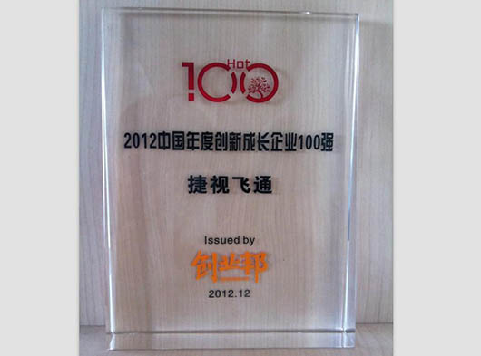 由創(chuàng)業(yè)邦傳媒組織評選的“創(chuàng)業(yè)邦100”中國年度創(chuàng)新成長企業(yè)評選活動,歷時3個月,參選企業(yè)達5000余家。捷視飛通在創(chuàng)新性和成長性等方面的優(yōu)勢明顯,成功入選2012“創(chuàng)業(yè)邦100”-中國年度創(chuàng)新成長企業(yè)100強。