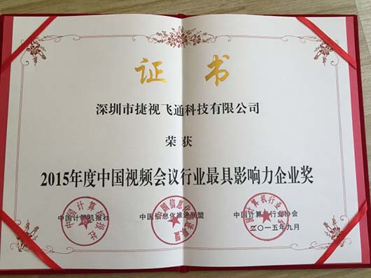9月17日,由中國計算機報社和中國計算機行業(yè)協(xié)會主辦的的“第七屆中國行業(yè)信息化獎項評選活動暨2015中國行業(yè)信息化發(fā)展高峰論壇”在北京國賓酒店召開,捷視飛通科技有限公司榮獲“2015年度中國視頻會議行業(yè)最具影響力企業(yè)獎”,成為視頻會議領域的最大贏家并倍受矚目。