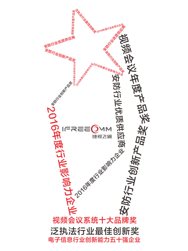 視頻會議系統(tǒng)十大品牌獎、電子信息行業(yè)創(chuàng)新能力五十強企業(yè)、安防行業(yè)優(yōu)質(zhì)供應(yīng)商、安防行業(yè)創(chuàng)新產(chǎn)品獎、視頻會議年度產(chǎn)品獎、泛執(zhí)法行業(yè)最佳創(chuàng)新獎、2016年度行業(yè)影響力企業(yè)