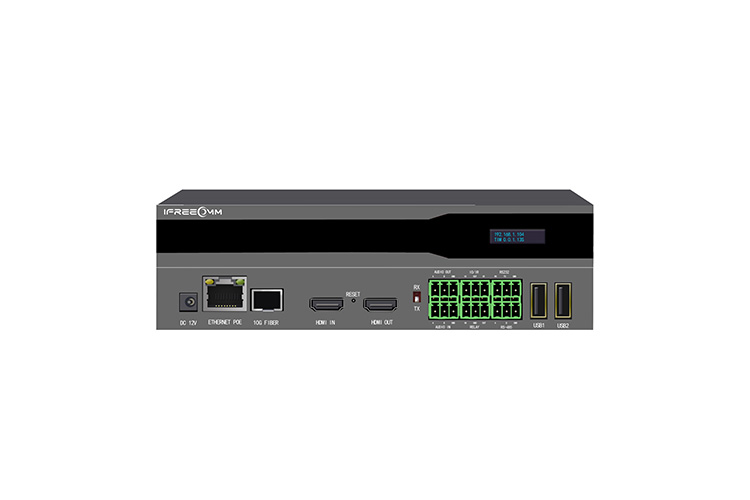 OLED顯示屏,標(biāo)準(zhǔn)H.264/H.265協(xié)議,最高支持4K@60編碼,具有一個(gè)千兆網(wǎng)口、一個(gè)光纖接口,支持光網(wǎng)雙網(wǎng)絡(luò)熱備份,一個(gè)HDMI輸入口、一個(gè)HDMI環(huán)出口,一個(gè)音頻輸入口、一個(gè)音頻輸出口,一個(gè)RS-232接口、一個(gè)I/O接口,一個(gè)IR接口,兩個(gè)USB接口,KVM功能。
